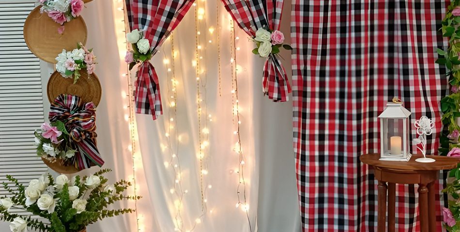 A vintage farmhouse background exudes nostalgia and comfort. Use an old wooden wall, a shiplap panel, or even a fabric background in soft neutral tones. Adorn with dried wreaths, galvanized metal buckets, and warm plaid throws. Include antique lanterns or vintage milk jugs for a touch of rustic flair.
