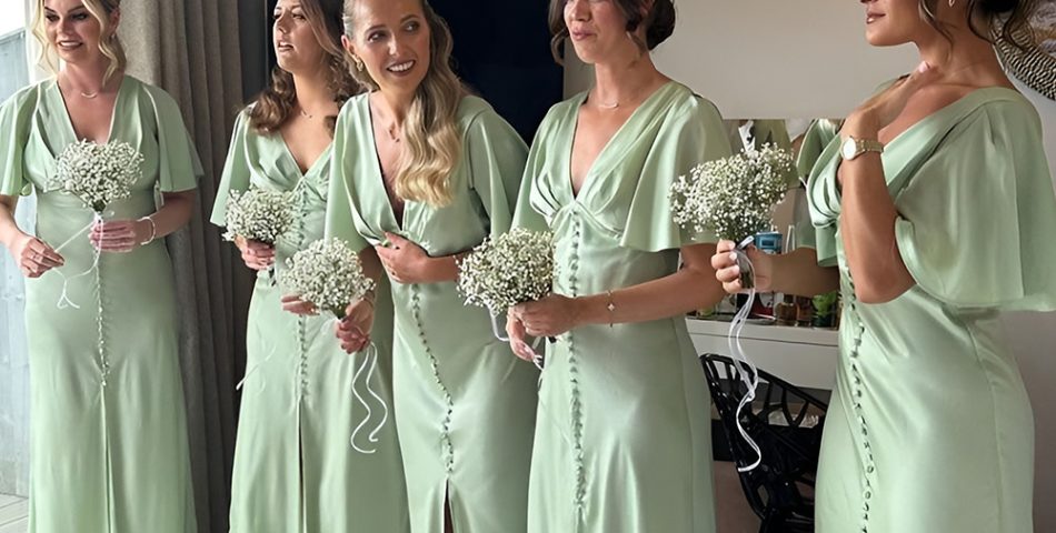 Chiffon or satin is a good choice of fabric that adds airy comfort and a graceful drape to the dresses, suitable for both outdoor and indoor venues. Mint green is appropriate for all skin tones and body types; therefore, each bridesmaid will feel confident in this dress. Its refreshing hue captures spring energy while remaining timeless and versatile for any wedding theme.