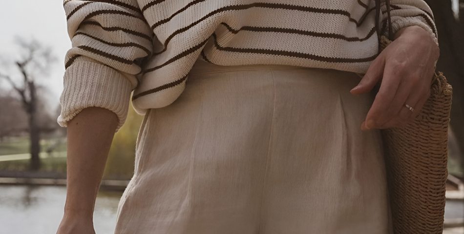 A lightweight knit sweater pairs naturally with linen shorts for comfort and breathability in changeable spring weather. The knit adds gentle warmth, while the linen will keep it fresh. Earthy tones such as oat, clay, or pale vanilla invoke a relaxed, coastal-inspired palette. Slide sandals or espadrilles keep the feel easy, and a canvas or woven bag extends the natural texture into accessories.