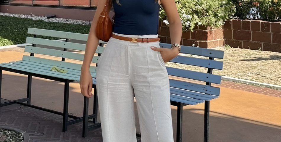 Paper-bag waist pant features soft, gathered details for added interest and comfort. A simple tank keeps things in balance, letting the waist be the star. Neutral tones or earthy shades create a relaxed, grounded feeling. Slide sandals or low-heeled mules round out the silhouette without overpowering it.