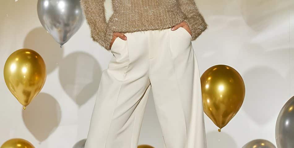 Wide-leg trousers are your styling secret to that easy, sophisticated holiday look. Select a pair in a celebratory color, such as deep green or burgundy, or opt for a neutral classic for its versatility. Balance the bulk with a fitted top, silky cami, or cropped knit. Heels or platform boots stretch out your legs and add an extra-lattering silhouette.